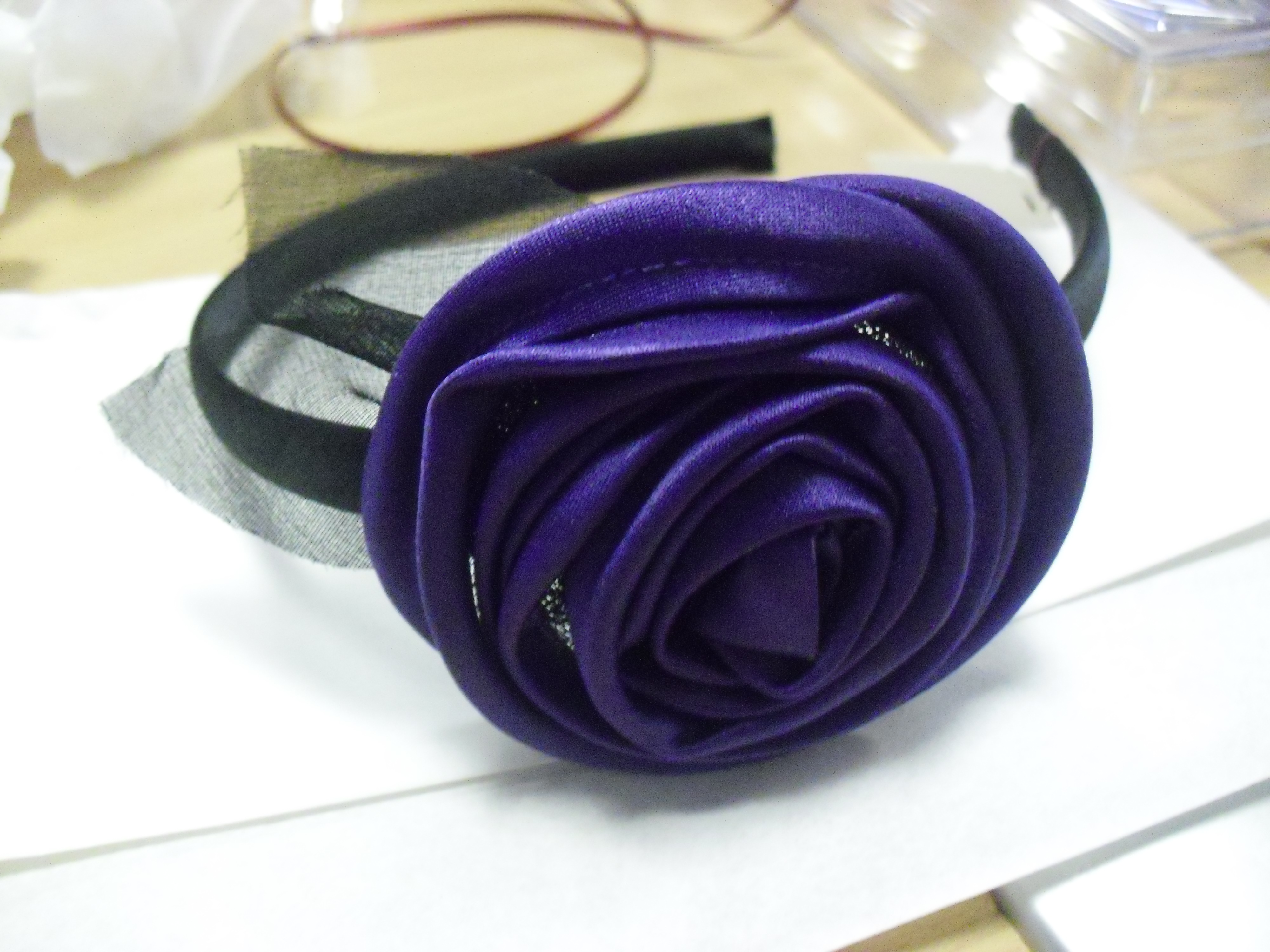 This satin rose corsage headband is a beautiful Cadbury shade of purple. It reminds me of a rose on a hat we once randomly had in the dressing up box of my younger years. Usefully, the rose can we adjusted around the headband so that it’s easy to sit on the right place on your head!