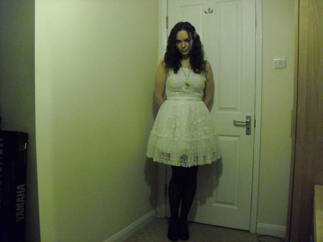 The only issue I have now is finding a slip short enough to go under the dress! M&S slips I’ve tried thus far have been woefully long so I’m considering a trip to BHS sometime soon. When I wore the dress before (to a Little Comets and Vinyl Jacket gig), it was with the tutu underskirt, biker jacket and lashings of smokey eye makeup. Next time I want to take the look in an entirely opposite direction, with a fresh face and girly accessories. (Tips for slips much appreciated!)