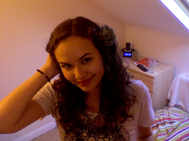 I’ve done ‘Mad Men’ with the demure nude kitten heels and vintage bag, nautical with the cardigan and necklace (which I made from an old keyring) and florals with the dress and the beautiful rose silk alice band that I was sent by the lovely Melissa and Claire from luxury hair accessories company Stone Bridge. I wouldn’t normally throw so many things together, but I haven’t yet found a jacket to go with the dress so I settled for the cardi and thought I’d try and – in the words of Project Runway’s Tim Gunn – “Make it work”.
